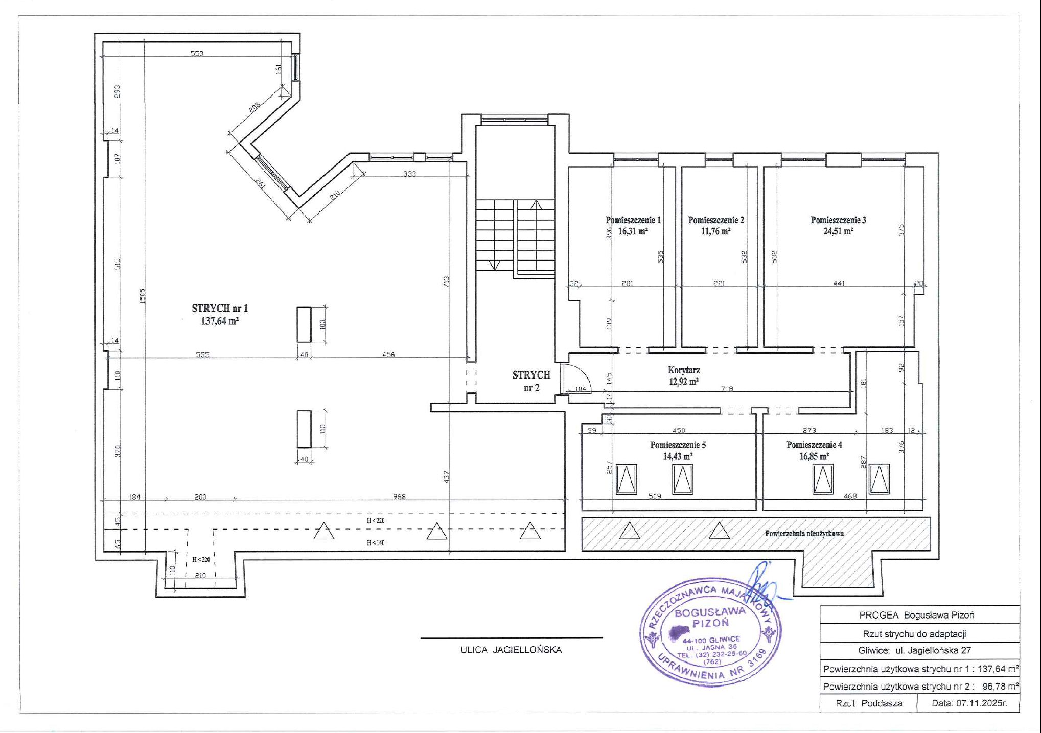 -cena minimalna strychu o powierzchni użytkowej 96,78 m2 – 2849,76 zł/m2 – 275.800,00 zł na podstawie operatu majątkowego.